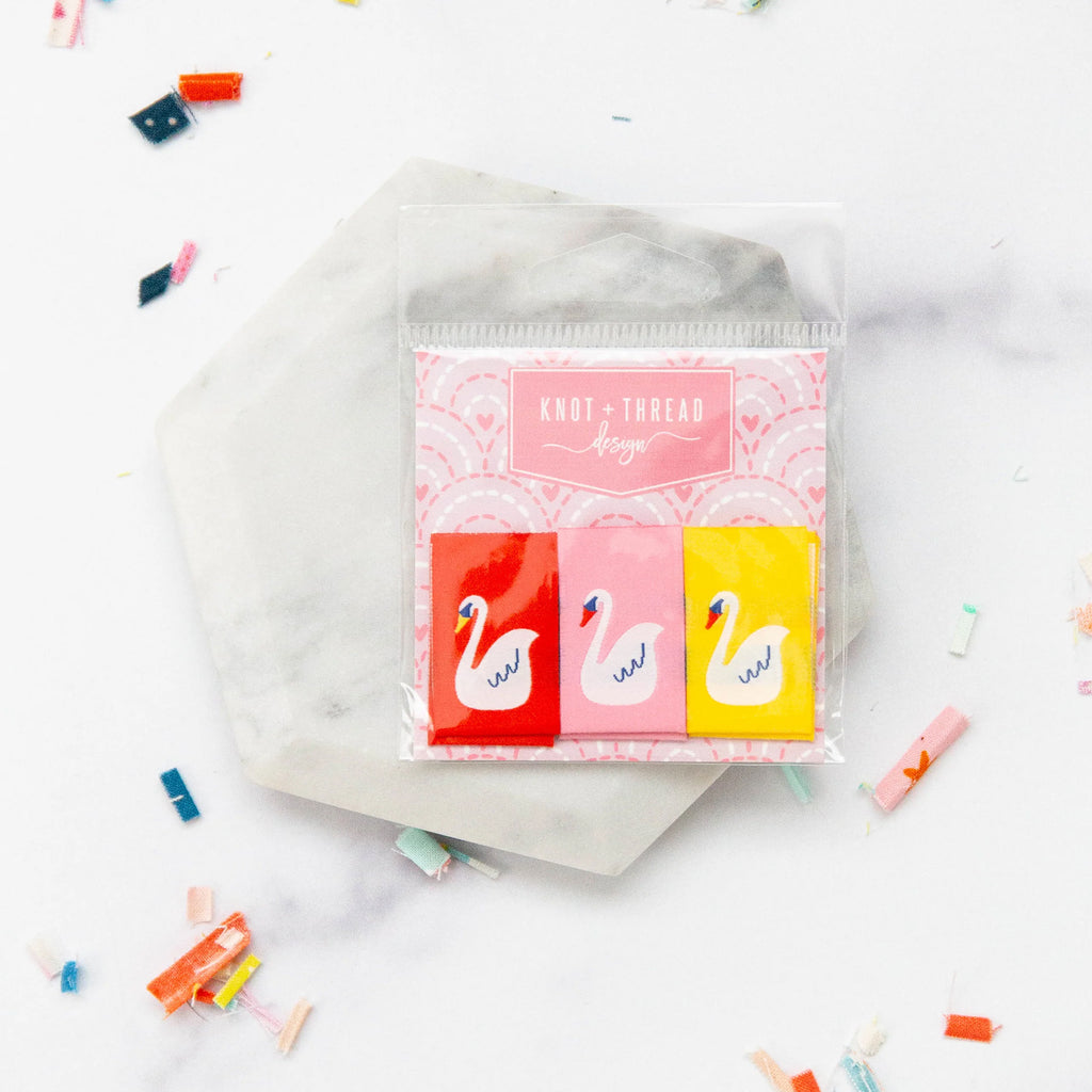 Bring a graceful finishing touch to your handmade projects with these swan sew-in labels! Measuring 3/4" wide, each label features an elegant swan design—perfect for quilts, bags, garments, or any project that deserves a sweet and polished detail.